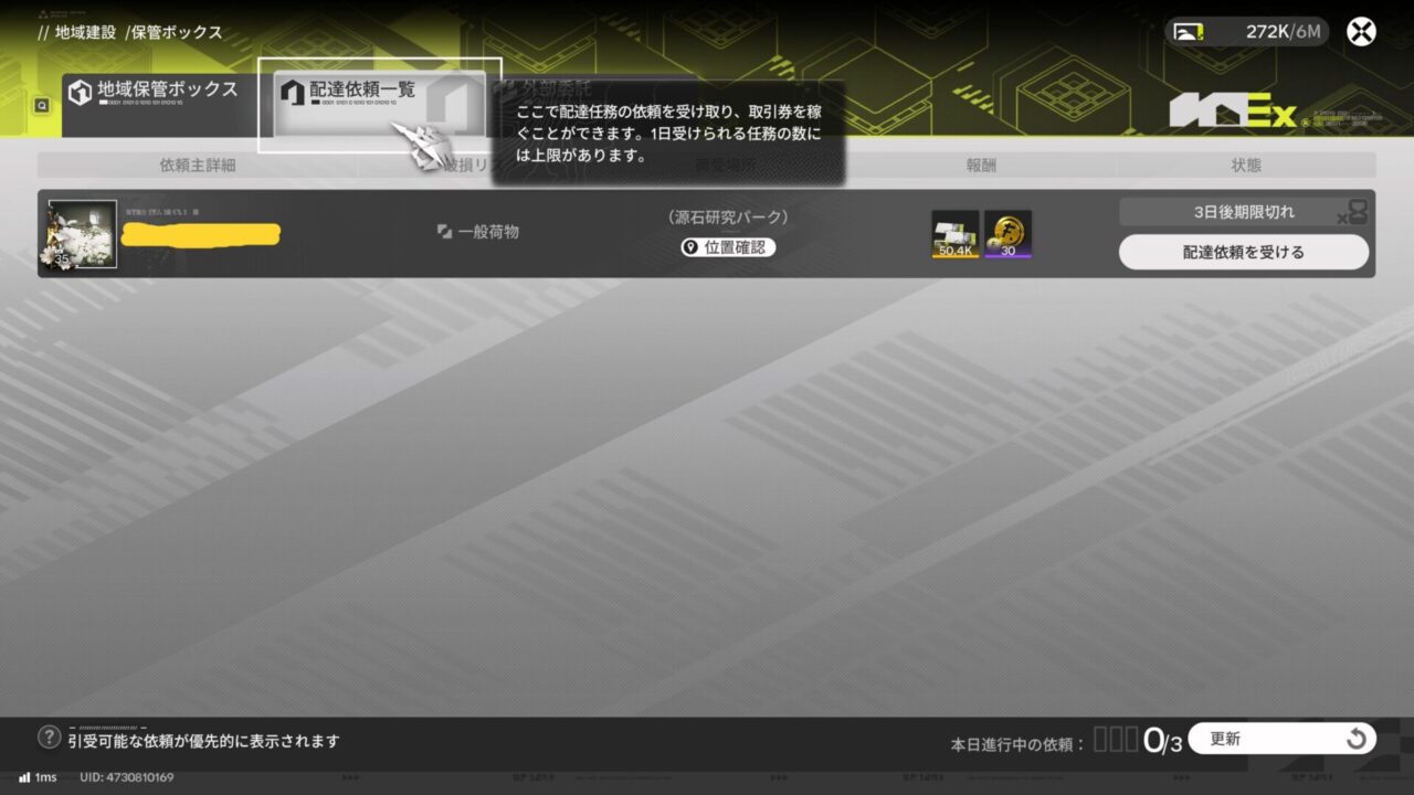 ちなみにフレンドに向けて配達を委託することも出来るみたい。外部委託が完了すると、依頼した側と受けた側どっちにも同額の取引券が手に入るらしい。お得じゃん。
