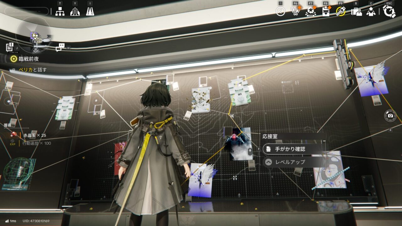 そして応接室も改築され、手がかりを得られるようになった。アークナイツにもあったシステムだ。全種類の手がかりが集まると情報共有会みたいなのが開けて、それに参加するとフレンドポイントが貰えるというやつだ。さすがにまだ情報共有会を開いているフレンドはいなかった。さすがにね。