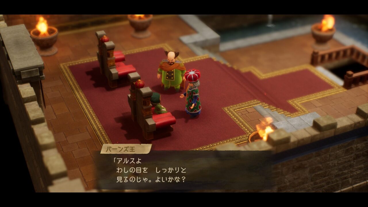 王様に会いに行くと、玉座に座らせられた。いいの?僕がこんなところに座って……。ついでにその王冠もかぶらせてもらえませんか?キーファは妃の形見を持ち出してどこかへ出かけたようだった。メチャクチャな男だぜ。