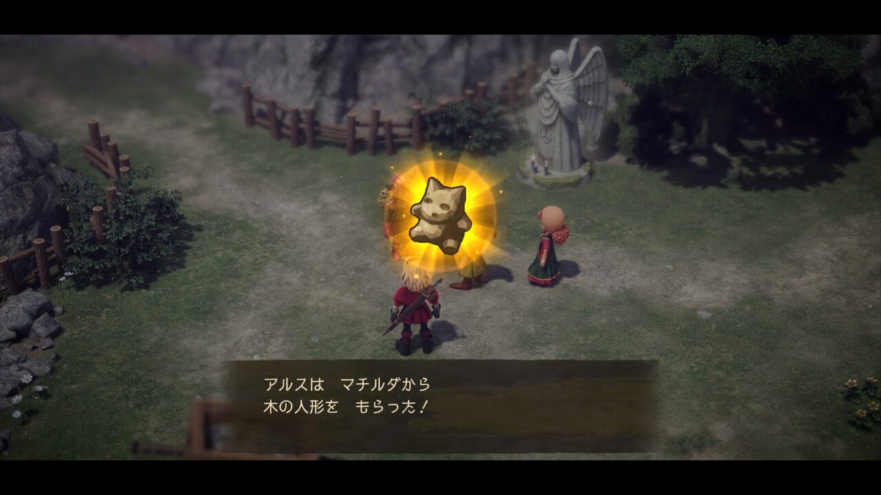 でも息子のパトリックは村人たちは助けてくれなかったと悲しそうに呟く。人間不信になっちゃってんじゃん。マチルダにもらった木の人形を渡すか選択肢が出たので、渡してみた。するとパトリックはもう一度村の人達を信じてみることにしたようだ。