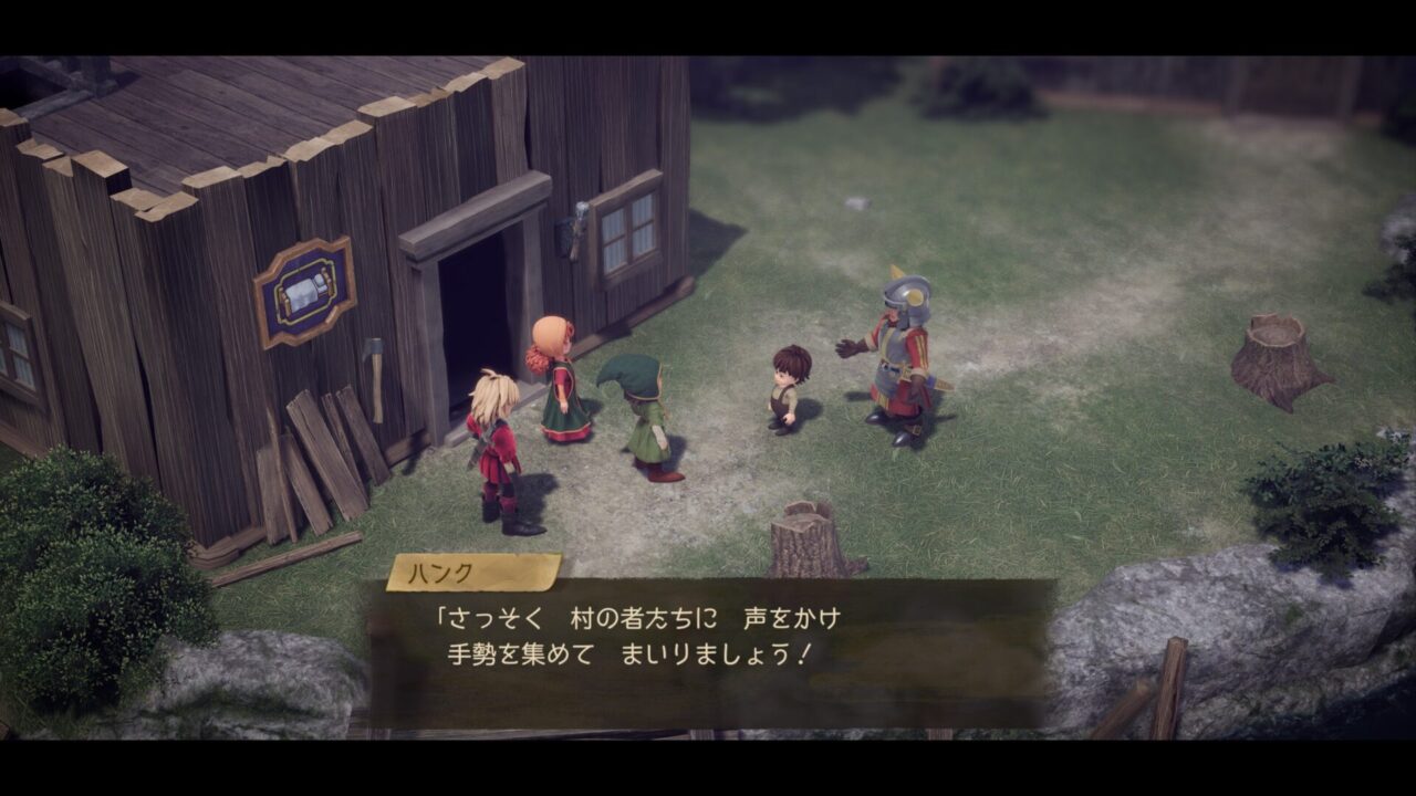 パトリックの父、ハンクは緑色の宝玉の光を浴びて一晩で元気になったようだった。あの宝玉、どんなパワーが秘められているんだ……。魔物の出る採石場で宝玉を探してきてくれたアルスたちの勇気に感化されて、ハンクさんはもう一度魔物に立ち向かうつもりらしい。村の人達にも声をかけて、一緒に行くよう説得するつもりだ。