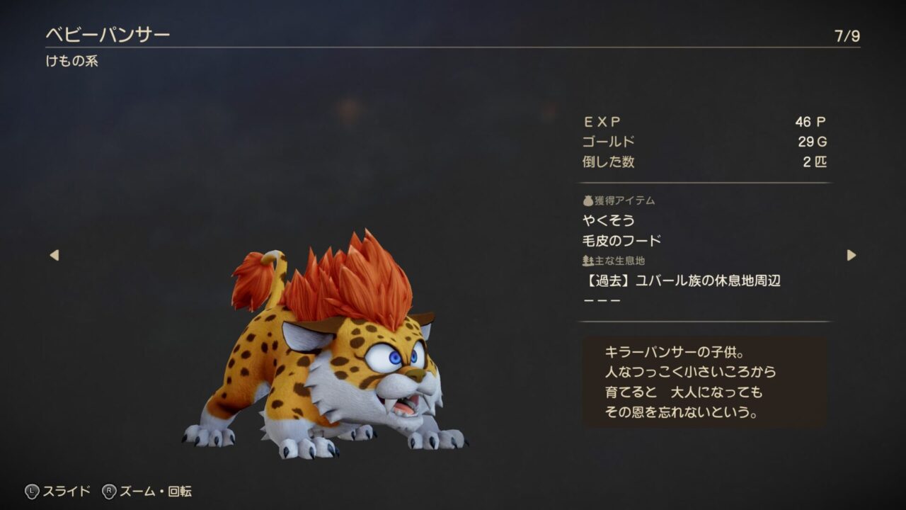 新たに到着した島は夜で、薄暗い。魔物たちも元気に活動している。新しい島に来ると見たこと無い魔物がいて、それを見るのがなかなか楽しい。ベビーパンサーがいて嬉しくなっちゃった。かわいいねぇ~!!
