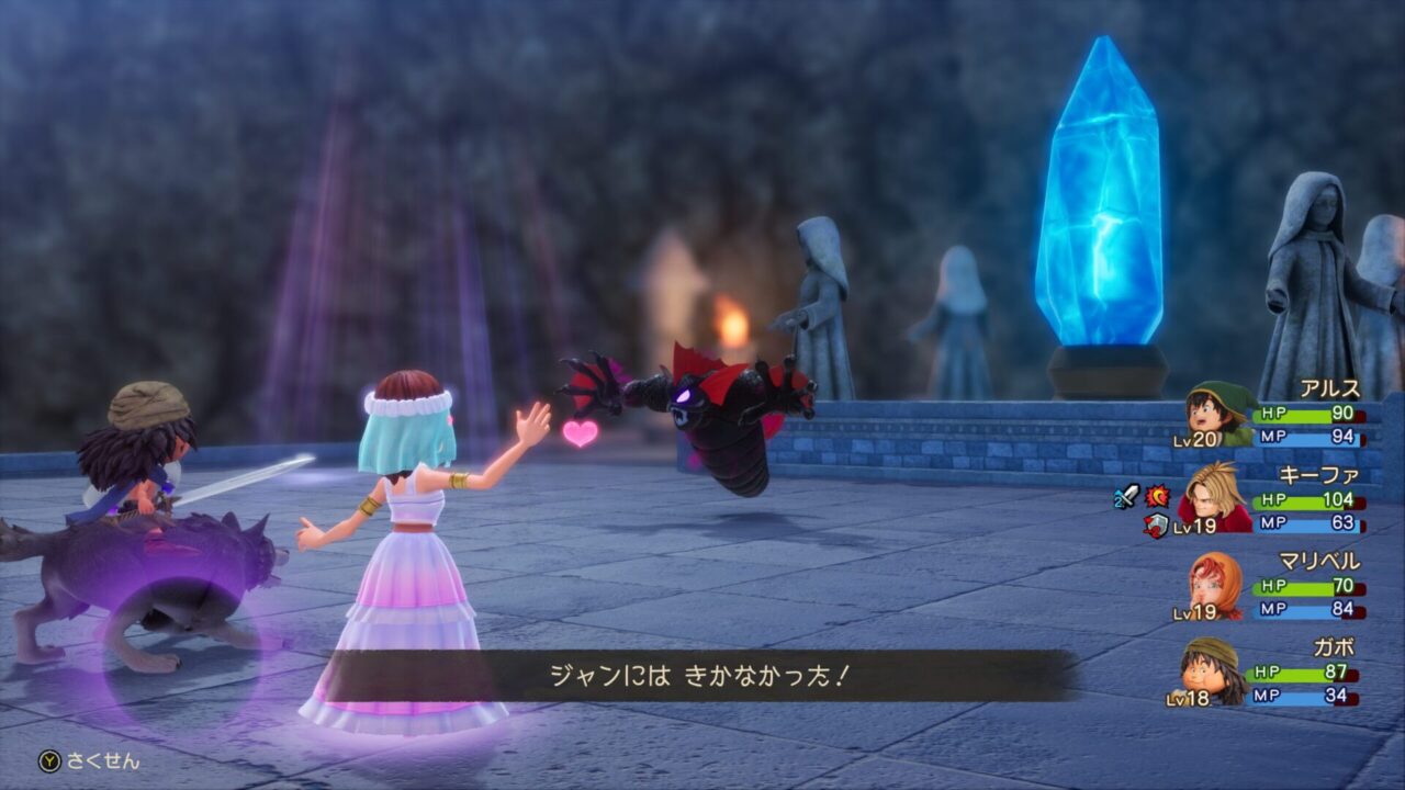 キーファ、いなくなっちまった……。3 人パーティなのがさみしい。もう宮野真守ボイスも聞けないってことか……。残ったのはクソガキマリベル、野生児ガボ。めちゃくちゃ振り回される予感しかしない。アルスがしっかりしなくては……!!がんばれアルス……!