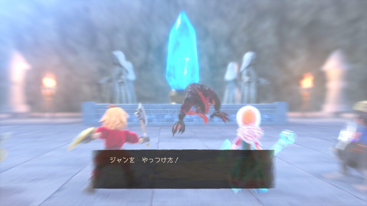 全体攻撃がなかなか痛かったが、ライラが全体回復をしてくれたので助かった。そのままの勢いでジャンを倒し、なんとか危機は去った……。
