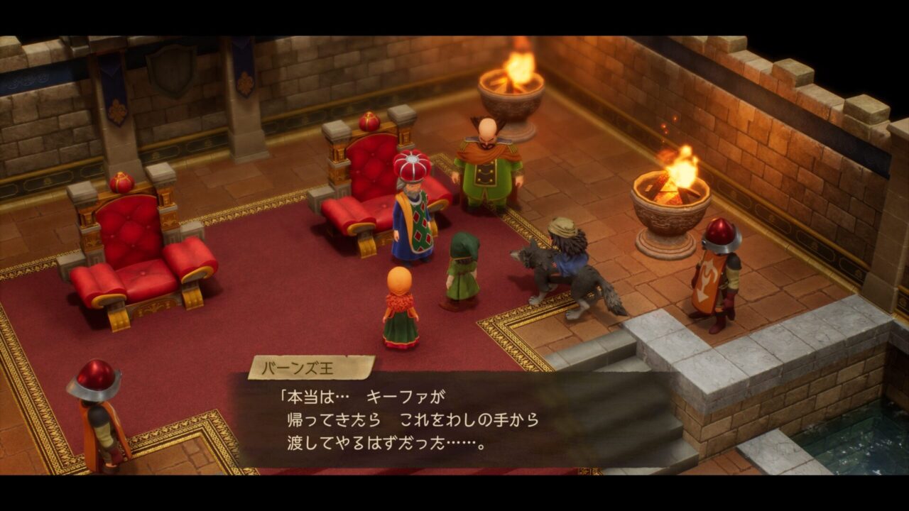 お前がそばにいろ!!!!王様はキーファのことを子供扱いしていたことを後悔していた。縛り付けてしまったのがよくなかったかと、しかしキーファの旅を認めようともしていたみたいだ。青色の石板の欠片を渡してくれて、次にキーファが帰ってきたら渡そうと思っていたと言っていた。