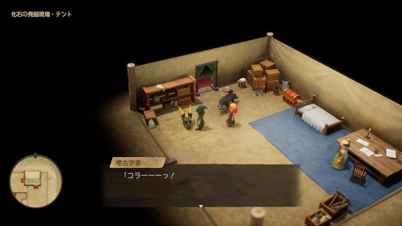 仕方がないので現代に戻り、新たにできた島へ船で訪れる。ユバール族が暮らしていた地は空き地のままだが、化石の発掘現場とかいうのが出来ていた。5 ゴールド払って発掘された化石を見せてもらったが、これが何なのかわからない。さわるなと言われたが、さわってみるかと選択肢を求められたので触ってみた。