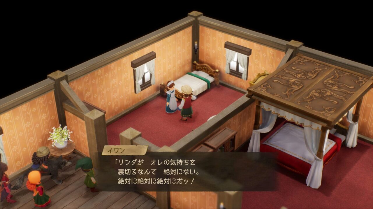 屋敷の中へ入ると、さっそく会話できたのはイワンという男性だった。ペペという男が、婚約者であるリンダにちょっかいを掛けているのが気に入らないらしい。急に登場人物増えてきて戸惑ってる。誰が何だって?
