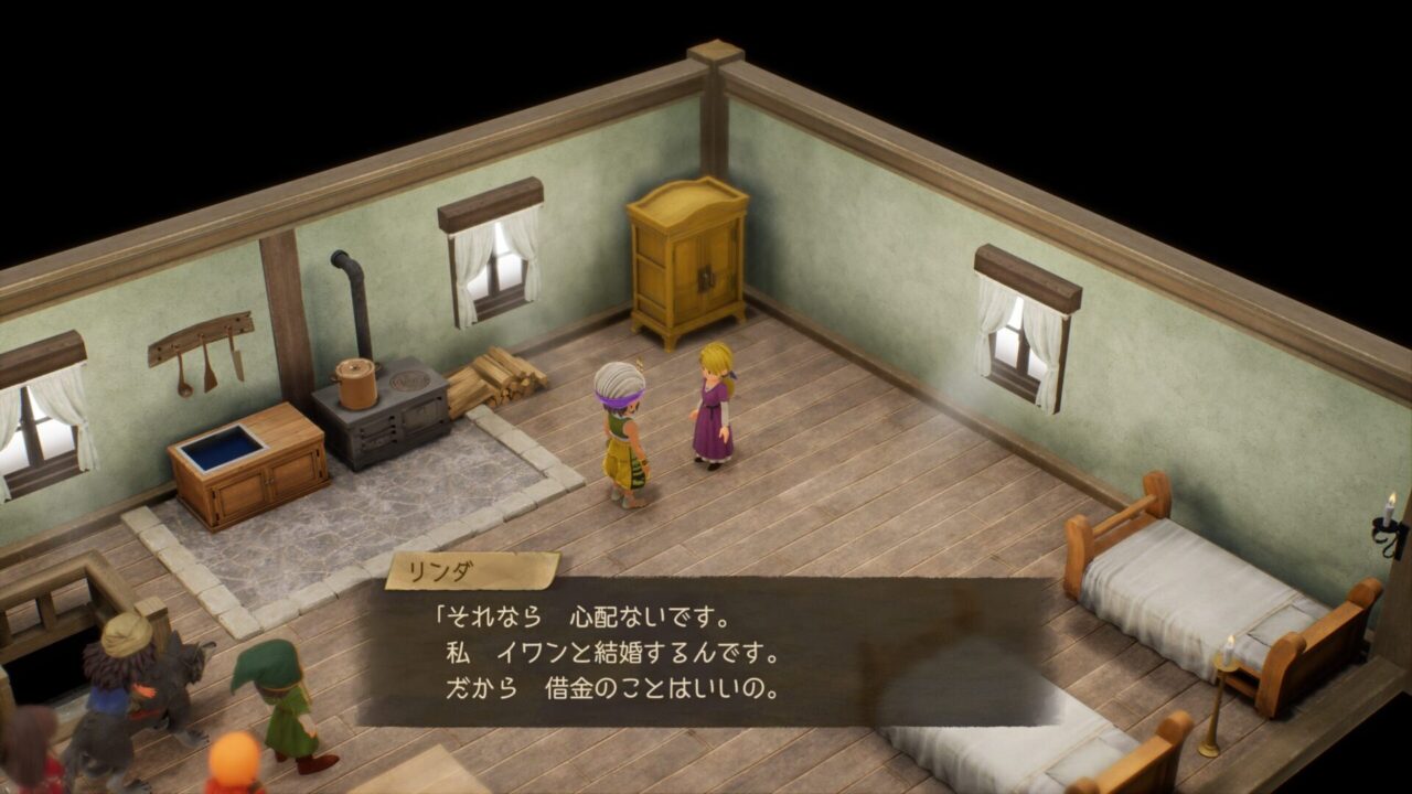 リンダの様子を見に行くと、商人がリンダにお金を渡そうとしていた。リンダは亡くなった両親の借金を抱えているらしい。この商人はリンダの父親にお世話になったことがあるらしい。