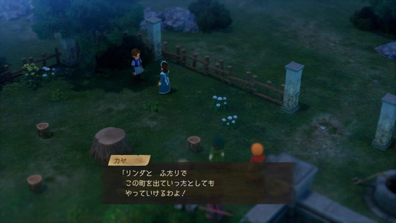 グリンフレークの東に出来たハーブ園、メモリアリーフに足を踏み入れる。リンダという名前の娘が元気に走り回っている……。どうやら、ペペは自分のハーブ園を持つという夢を叶えたようだ。やっぱり初代当主はペペだったか。しかし生涯独身って聞いてたけど、リンダという娘はどうしたんだ?
