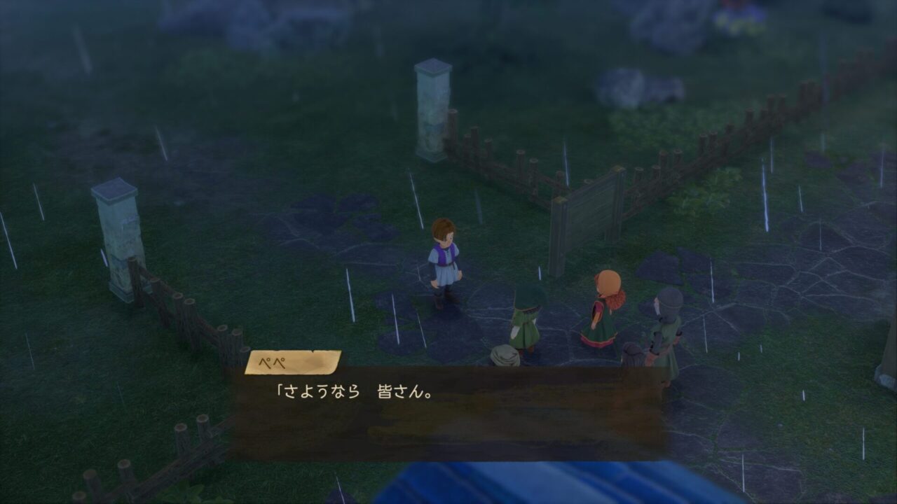 結局、雨はただの雨だったが宴はそのまま流れてしまった。雨に怯えた住民の様子を見に行くついでにペペを探すと、今度はリンダに問い詰められていた。
