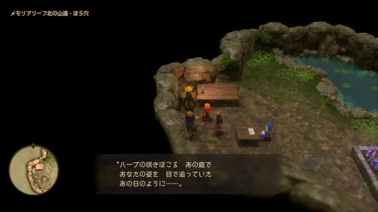 メモリアリーフに戻り、ペペにリンダの墓のことを伝える。なぜアルスたちがリンダのことを知っているのかと驚かれたが、墓まで案内してほしいと言われたのでまた山道を登ることに。