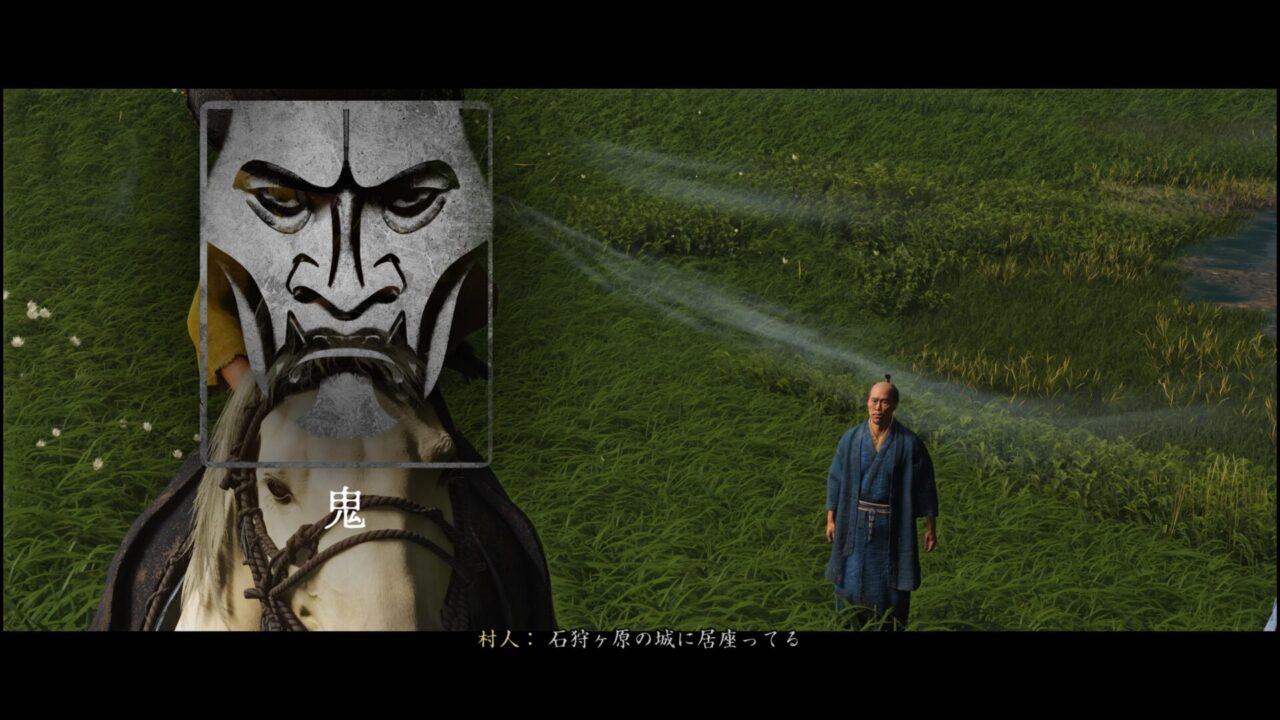 馬で草原を駆けていたら、村人がなにか話したそうにしていたので会話してみた。すると羊蹄六人衆・鬼(おに)の話をしてくれた。鬼は石狩ヶ原の城にいて、松前藩と真っ向からやりあっているそうだ。血の気が多そうな気がするな。斎藤兄弟、狐の話は前回聞いたし、これで一旦羊蹄六人衆の噂は全部かな。