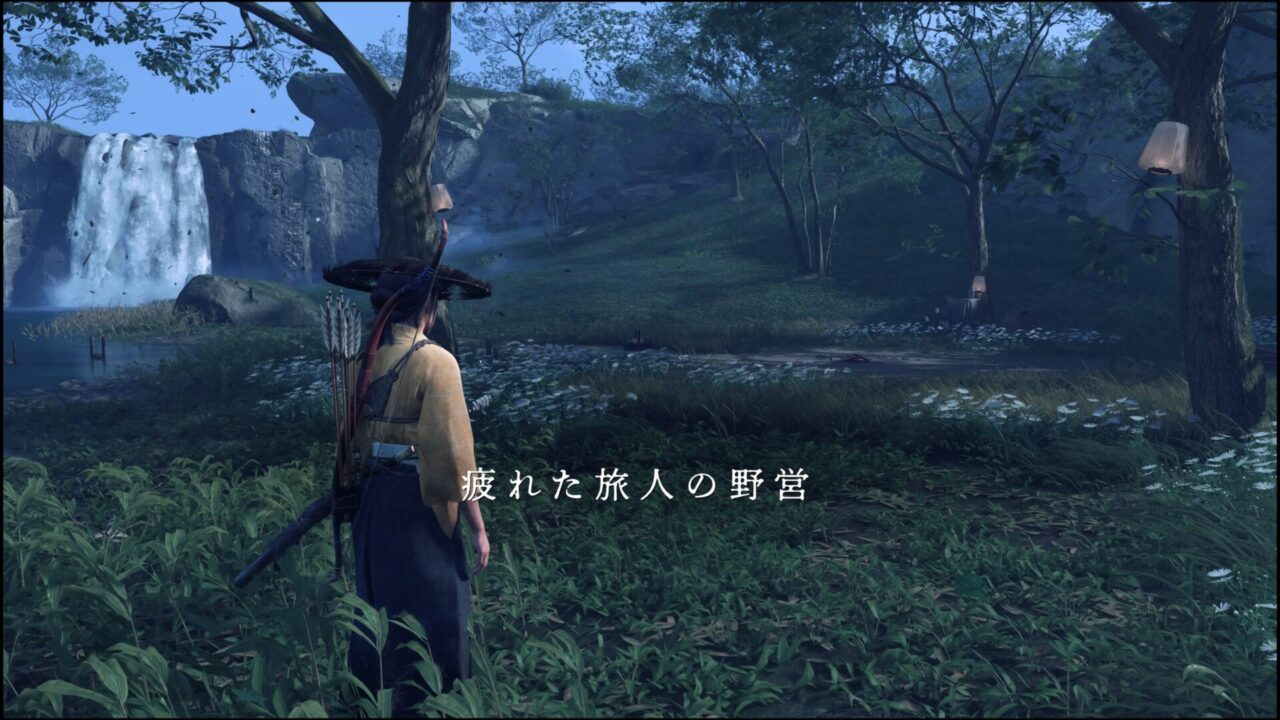 マップ画面で見たときは、フィールドもしかして結構狭いか?って思ったんだけど、実際に歩き回ってみるとかなり広く感じる……!そしていちいち表現が美しい。ツシマの時も思ったけど、どんな天候でもどんな時間でもそれぞれに美しさがあって、歩いて環境音聞いてるだけで時間が溶けていく……。面白すぎるぜゴーストオブヨウテイ!!