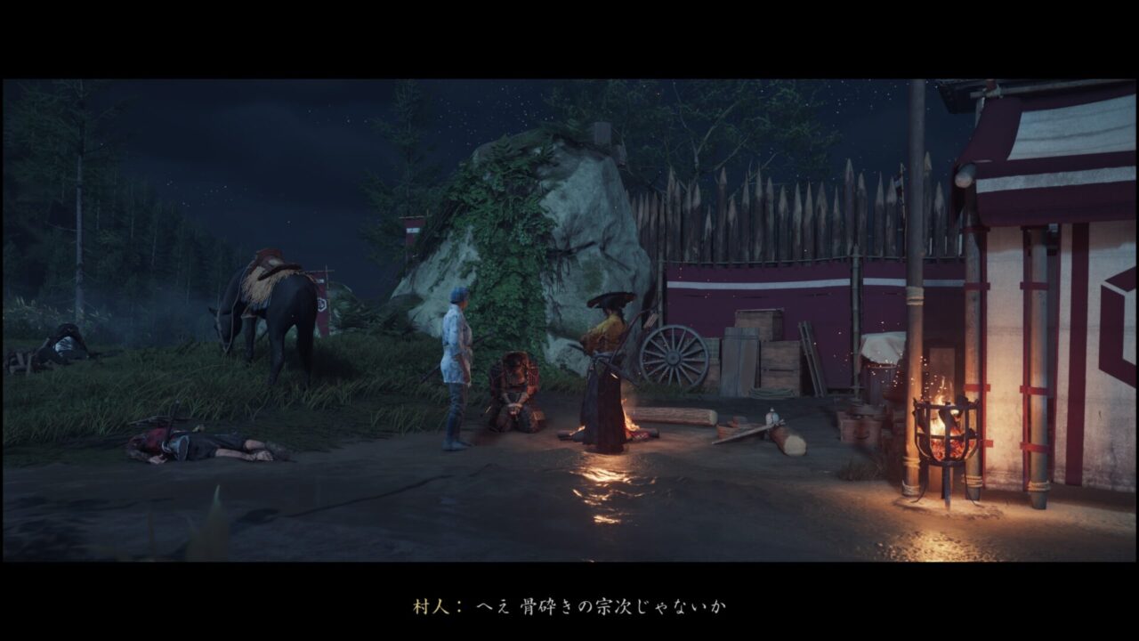 唐突にイベントシーンが始まった。古賀砦という場所で、斎藤が手下に向かって演説している。斎藤はもともと蝦夷地の人ではなく、幕府の支配から逃れてきた……?ここでは斎藤がすべての人を召し抱え、侍として生きることが出来ると言っていた。松前藩は北の守り手を自称しているが、ここの守護者は我々であると言った内容の演説だった。