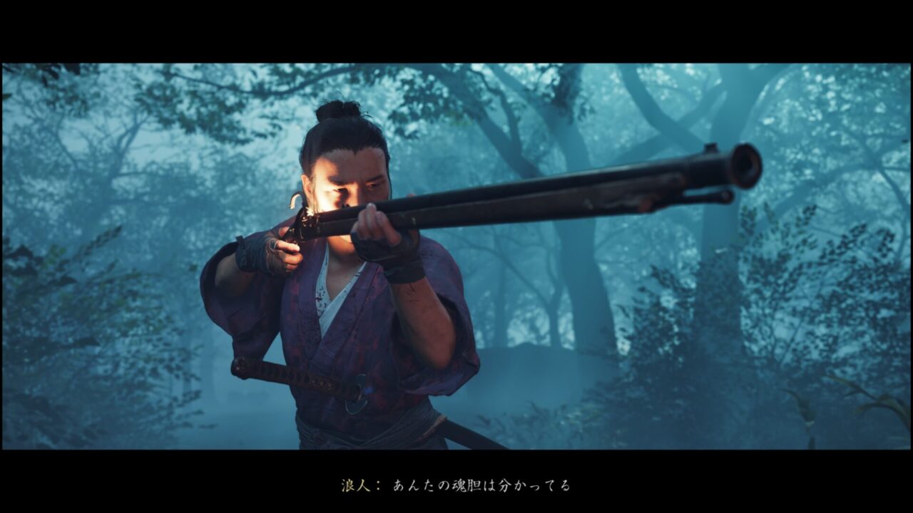 銃を持っている敵を倒し、さて一件落着……と思ったら、いつの間にか追いついてきた浪人に銃口を向けられていた。おいおい、話が違うんじゃねーの?