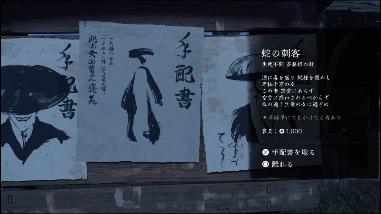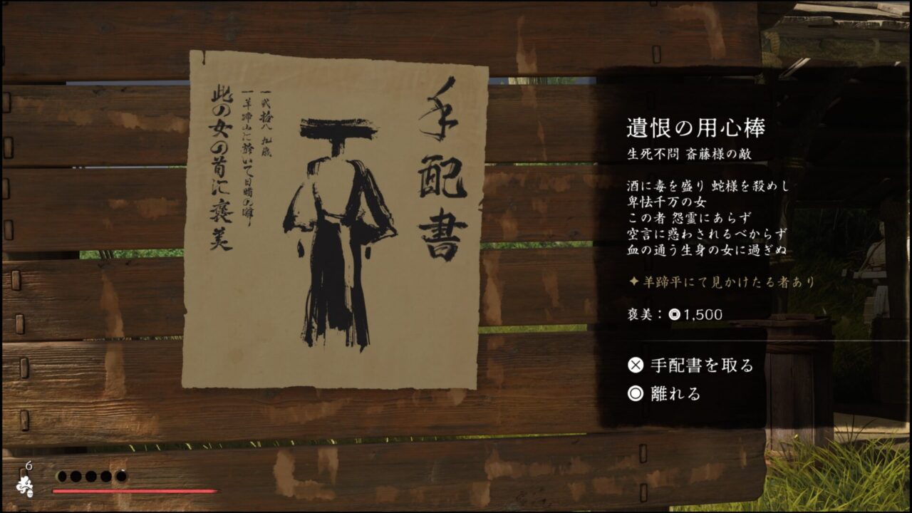 賞金首を倒した報酬を受取にいったら、手配書が更新されていた。賞金が 500 文上がっている。あとちょっとだけ人相書きも変わっている……?以前のものと比べてみたら、ちょっとだけディティールが追加されていた。