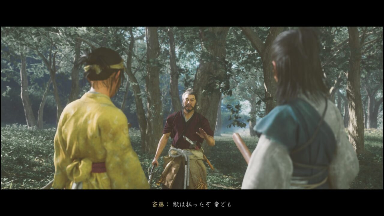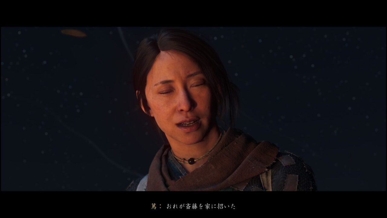 母は子供たちを家に入れようと斎藤から離し、父は斎藤と言い合っていた。しっかり理解できていないのだけど、もともと父は斎藤に仕えていた?斎藤家は滅びたけどこの斎藤成秋は出奔して、村を襲ったりして野盗のような生活をして生きてきたらしい。父はその行為に耐えられず、家が滅びたからと仕えるのをやめたっぽい。