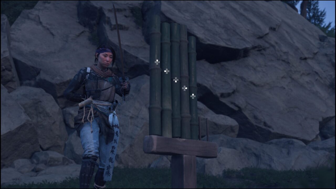 左腕の筋力が足りていないということで、右手を使わずに刀を自在に振り回せるようになる必要があるらしい。まぁ二刀流ってそういうことよな。片腕だけで竹を斬る稽古をさせられたんだけど、ボタン配置むずかし!!