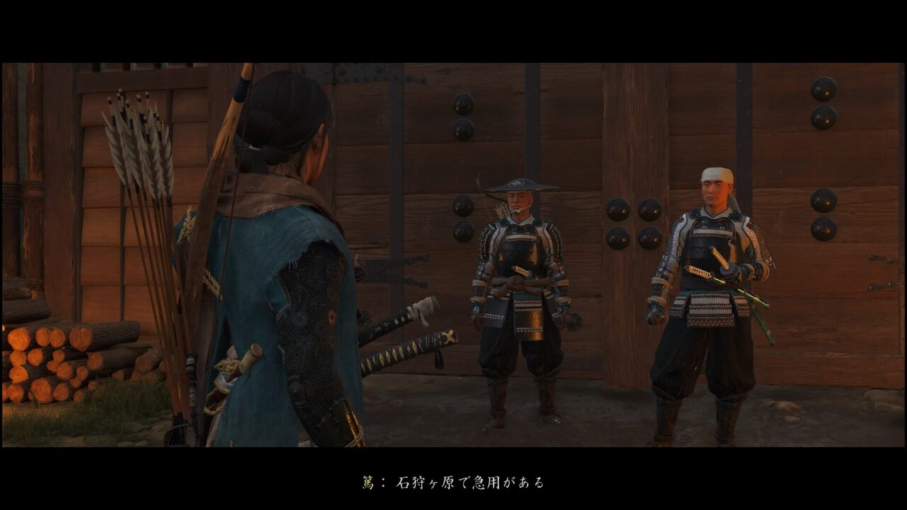 兜にツノ生えてるし、たぶんそこそこ偉い人だ。門の向こうへ行く侍一同を見送った後、そのまま通って良いと許可が出たので後を追うようにして門をくぐる。ついに石狩ヶ原か~!どんなところだろう。ウキウキとドキドキが止まらんぜよ。