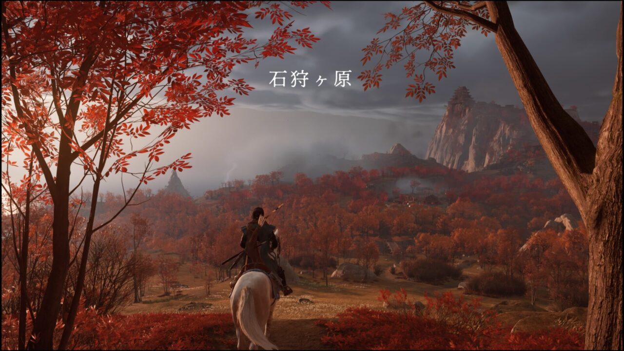 ちょっと淋しい感じの別れ方になってしまったけど、ようやく新しいエリアに足を踏み入れることが出来た。ここから先は石狩ヶ原だ。鬼退治を目標に、あっちこっち探索するぞ!こっちは全体的に赤くて、秋!って感じのエリアだね。羊蹄平は春っぽかったので、それぞれに季節が設定されているんだろうか。