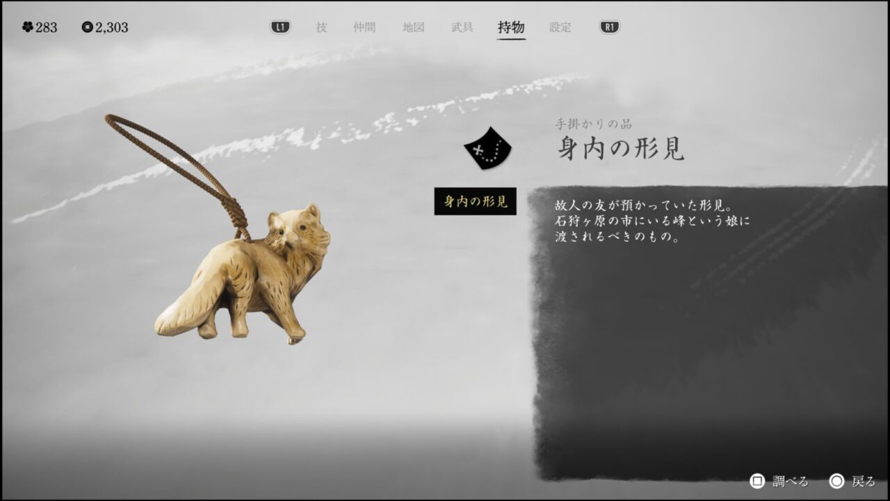 鬼面隊どもがいなくなった酒場では、銭弾きが遊べるようになった。わーい。そろそろお金稼ぎたかったんだ。二回目の賭けで護符を手に入れた。『盗火の勾玉』は、炎攻撃を受け流すか火矢を弾くと自分の武器に火がついて、火がついている間の攻撃は防御不可になるというものだった。けっこう強そうかも。相手に火を扱うやつが居れば逆に利用してやれるね。