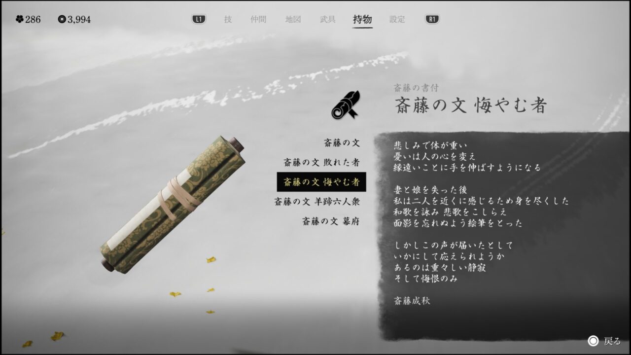 材木小屋を解放して手に入れた斎藤の文。今回は『悔やむ者』とサブタイがついている。