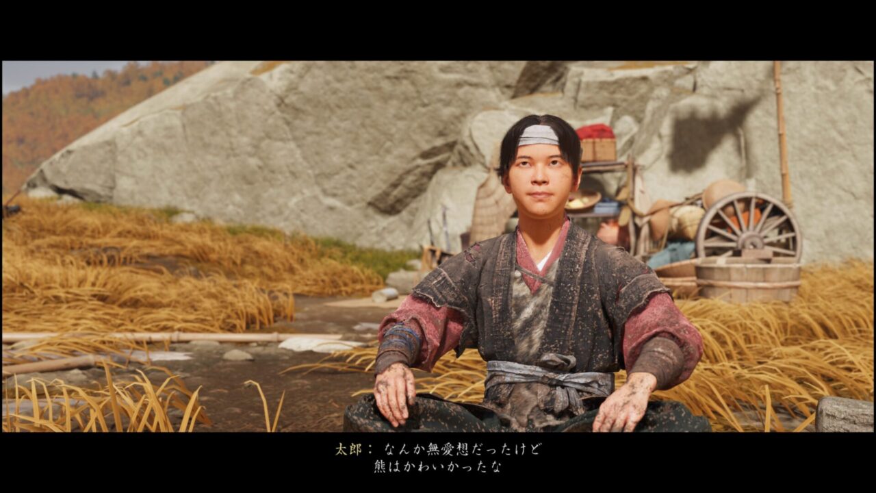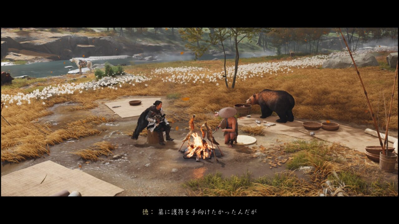 新しいエリアに着いて早々、熊を見つけた。戦おうと思ったら襲ってこないタイプのクマだったので近寄ってみると、徳(とく)という人間の男が居た。熊の名前は しの と言うらしく、一緒に暮らしているらしい。しのには友達がいたが一年前になくなってしまって、徳は彼女の墓前に護符を備えたいと考えた。しかし既に売ってしまったあとみたいで、取り戻して供えてくれないかと頼まれた。