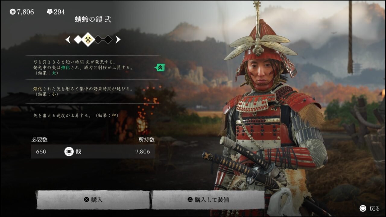 大治郎(だいじろう)という男から関ヶ原で活躍した古谷という男の鎧をもらった。射手の鎧なのであんまり使う機会がなさそうだけど、一応強化後の効果をみてみたら兜に蜻蛉が止まっている……。ちょっと、デカくてキモい。でかきも。