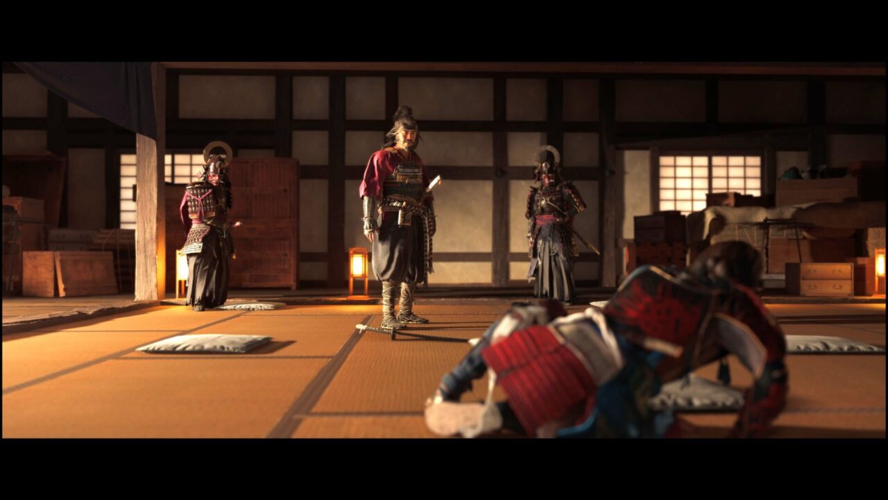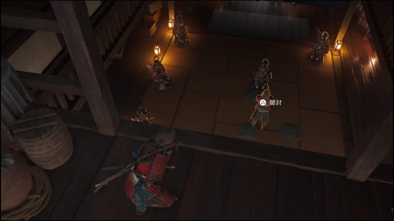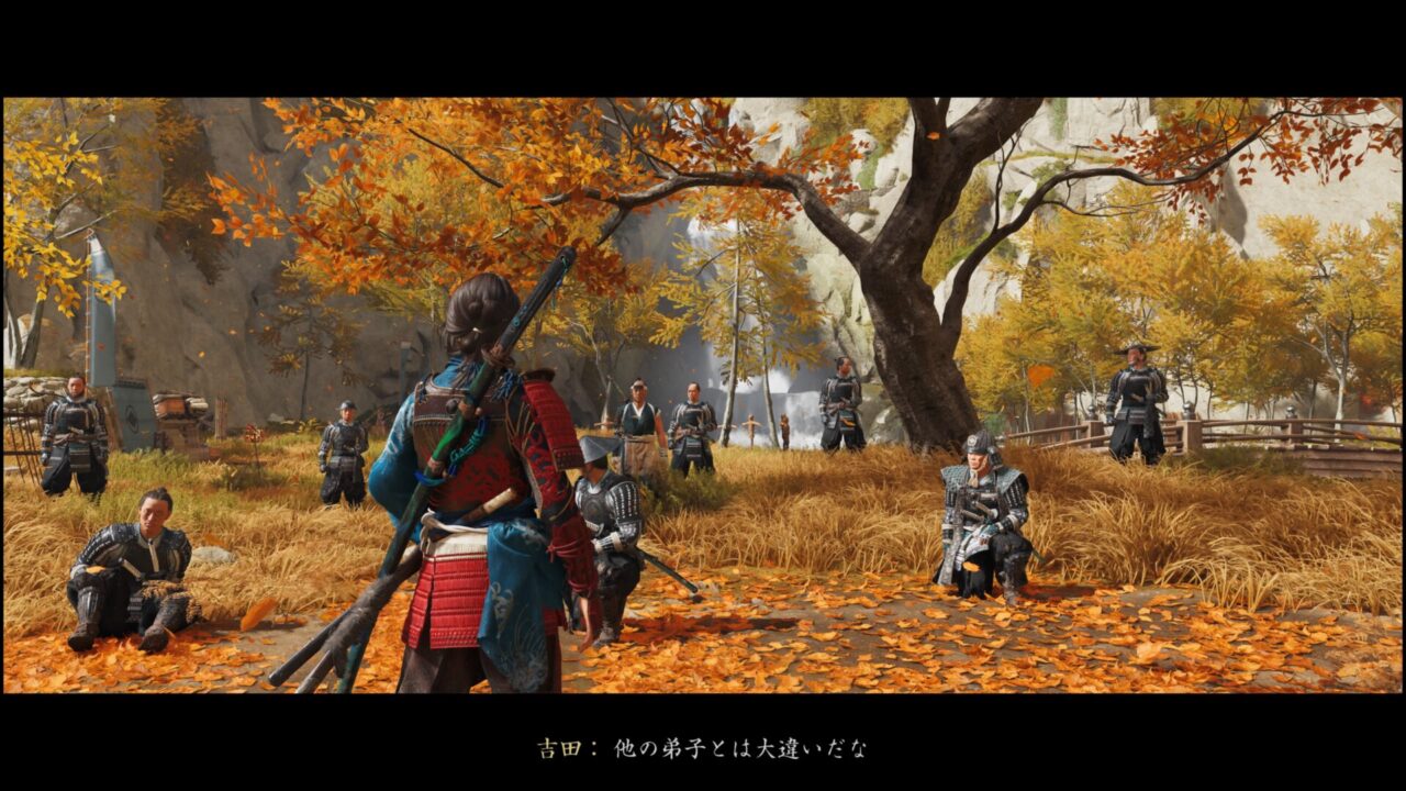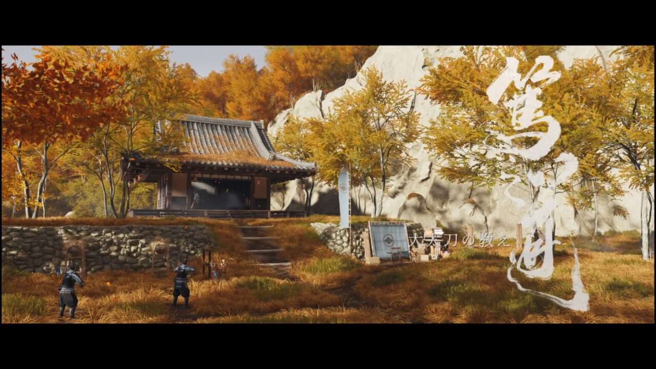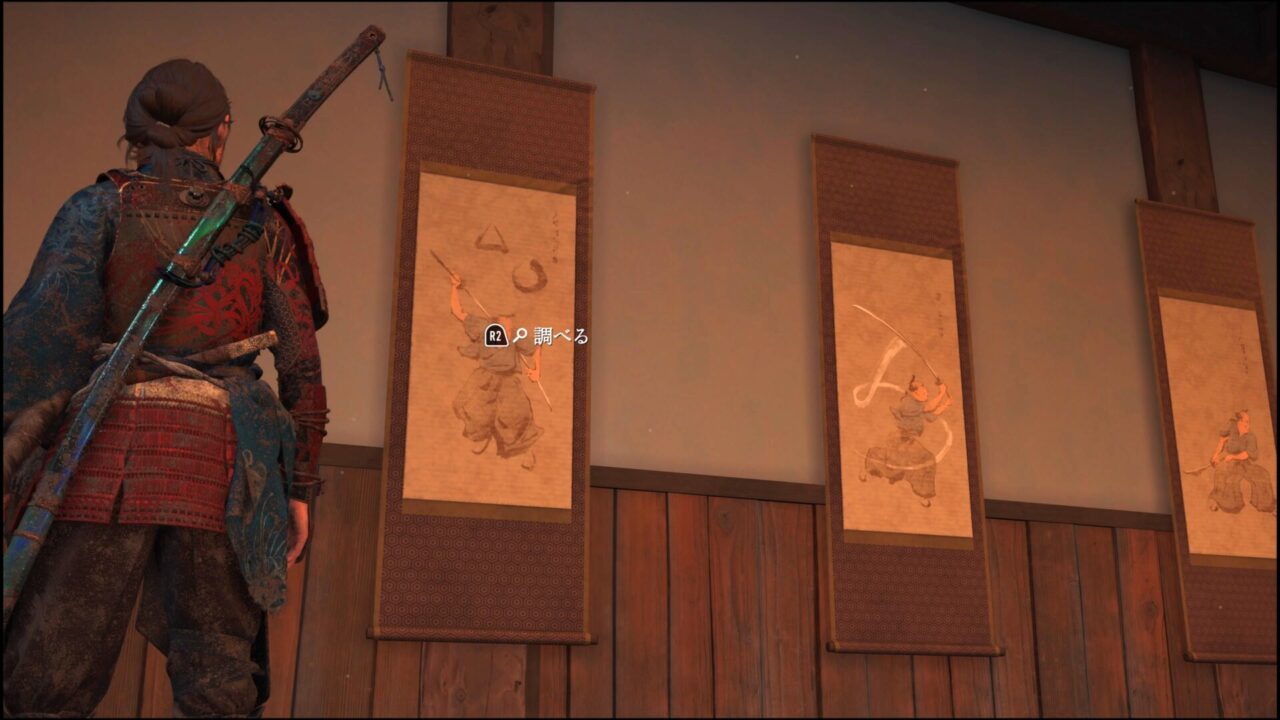 槍の道場にもあった掛け軸だ。△と◯同時押しで大太刀の奥義・山砕きが使えるようになるらしい。なんか全然スクショ撮ってなかったけど、吉田師匠と稽古しながら動作を教わる。そうこうしているうちに斎藤の手下が道場に向かって棒火矢を放ってきたので倒しに行った。