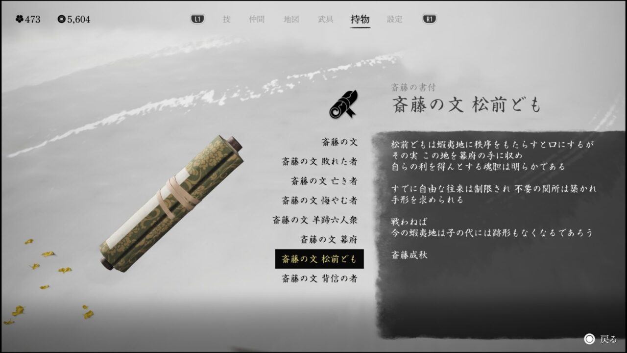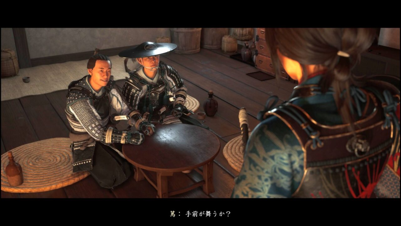 銭弾きをしている連中が狐についての情報を持っていそうだったので、ゲームに参加してみた。博打に勝つと、二階にいる頭領、藤田(ふじた)と話して来ると良いと言われた。松前のおえらいさんとはどうも馬が合わないんだけど、鬼の時のように協力できるなら心強いのは確かだ。