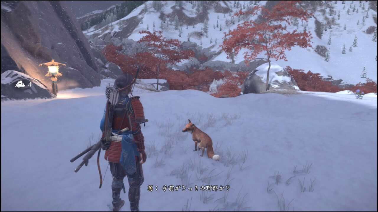 更に観察を続けると、近くの岩場になにかのマークを描いていた。暗号だろうか。見つからないように後を追いかける。また立ち止まったかと思ったら、マークを描く。何をお知らせしてるんだ……。そのうち二手に分かれたので、こちらも二手に分かれて追いかける。岩場で一瞬見失ったが、走って追いかけると狐が居た。